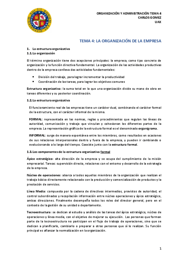 He publicado nuevos apuntes de 1º Organizacion y Administracion de Empresas: ADMINISTRACION-Y-ORGANIZACION-T7.pdf
