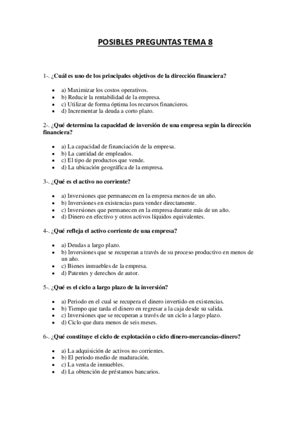 Son posibles preguntas de examen que he supuesto de los cinco primeros temas. Referencia: Ingenieria_Civil_363045