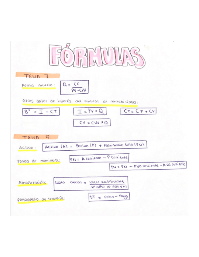 Faltan las fórmulas del umbral de rentabilidad
