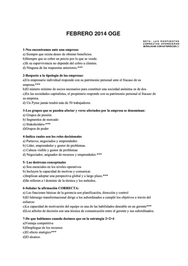 He publicado nuevos examenes de 1º Organización y Gestión de Empresas: FEBRERO 2014 RESUELTO