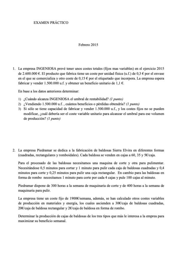 He publicado nuevos examenes de 1º Organización y Gestión de Empresas: FEBRERO 2015 RESUELTO