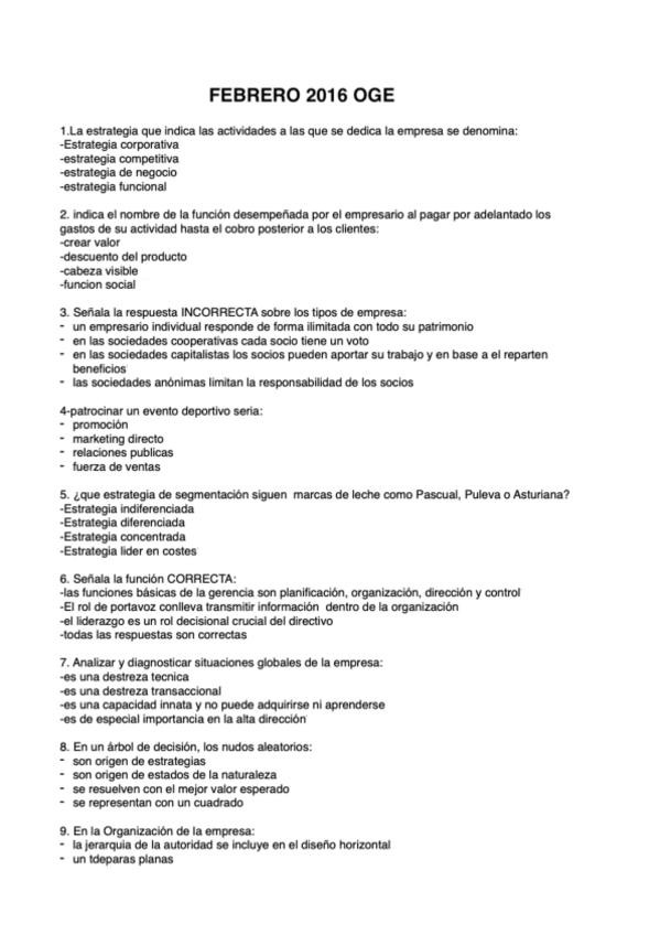 He publicado nuevos examenes de 1º Organización y Gestión de Empresas: FEBRERO 2016 RESUELTO
