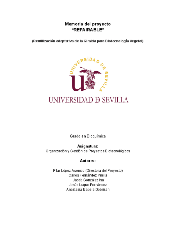 He publicado nuevos trabajos de 4º Organización y Gestión de Proyectos Biotecnológicos: MEMORIAPROYECTO.pdf