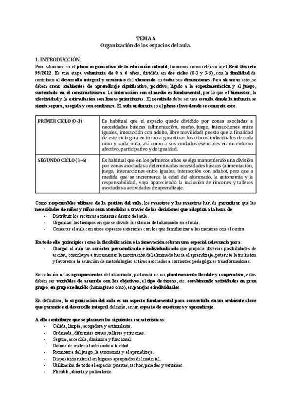 Resumen del Tema 1 de Organización y Gestión del Aula de EI