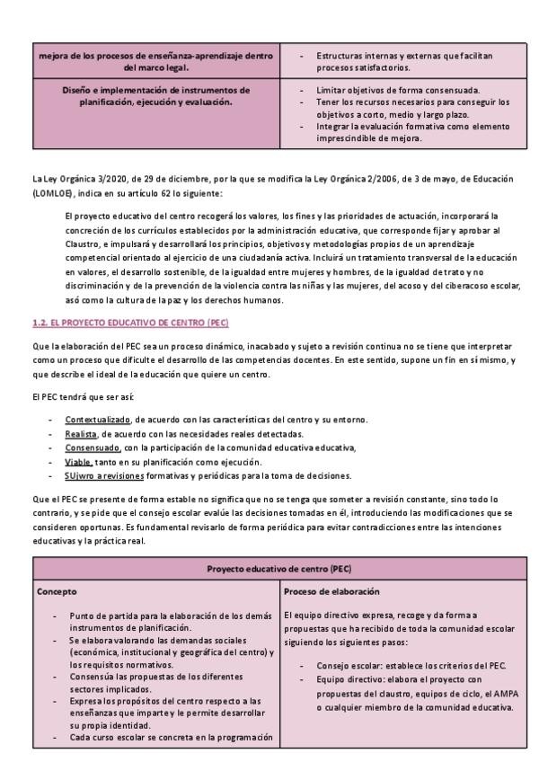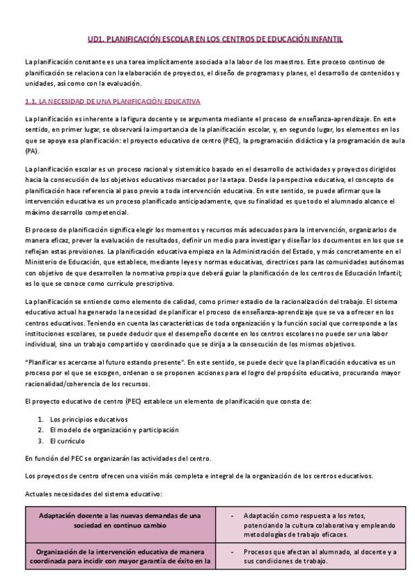 Resumen completo de la UD1 (planificación escolar en los centro de E.I.) de la asignatura Organización y Planificación en Educación Infantil (OP)