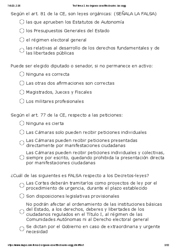 He publicado nuevos examenes de 1º Organos Constitucionales y Estructura Territorial del Estado: TIPO-TEST-CONSTITUCIONAL-II.pdf