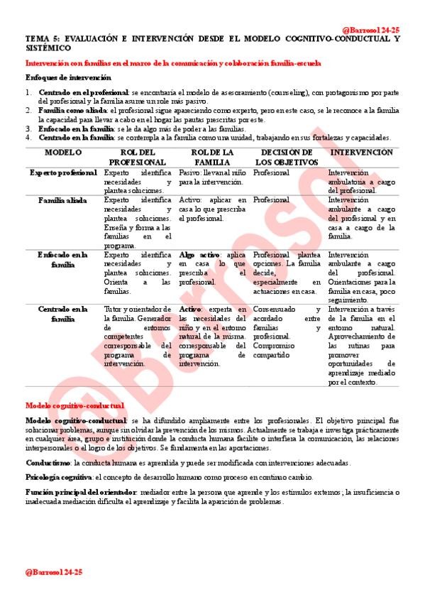 He publicado nuevos apuntes de 1º Orientación Familiar y Acción Tutorial: TEMA 5 EVALUACIÓN E INTERVENCIÓN INTERVENCIÓN DESDE EL MODELO COGNITIVO-CONDUCTUAL Y SISTÉMICO ESQUEMAS.pdf