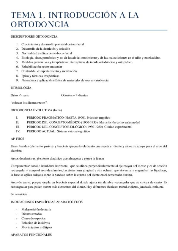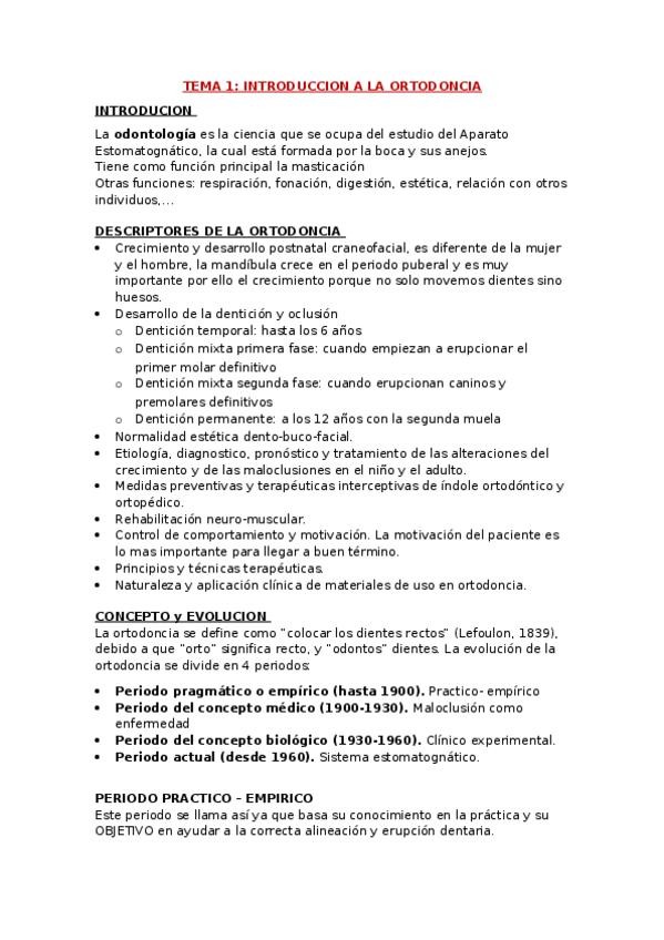 TEMARIO COMPLETO ORTODONCIA I (incluye las explicaciones de clase al completo)