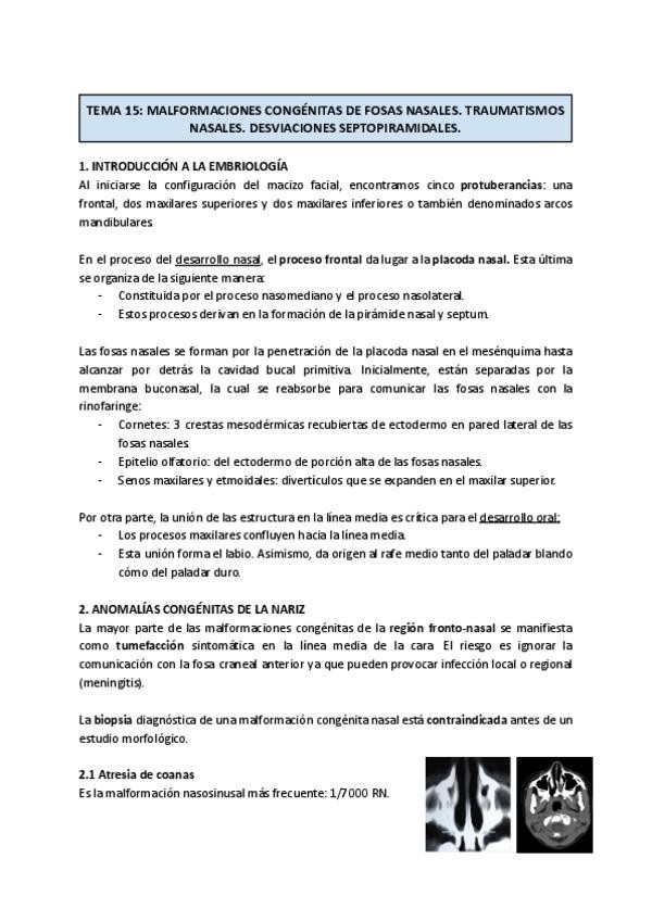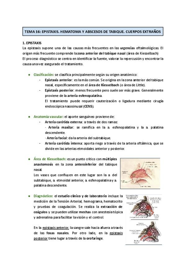 Resumen de las partes claves para el examen del bloque de nariz.
