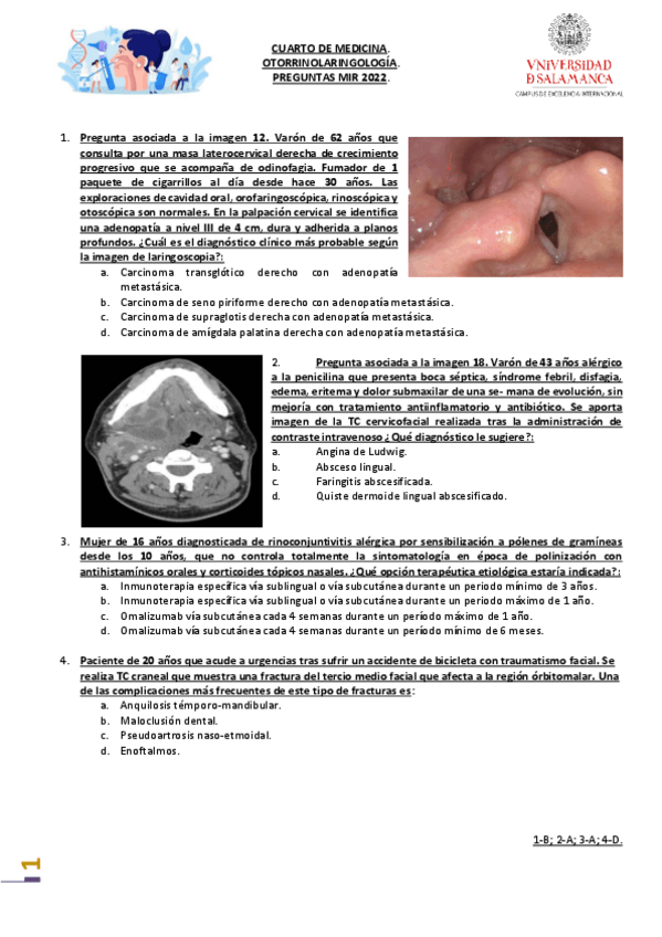 He publicado nuevos apuntes de 4º Otorrinolaringología: Exámenes