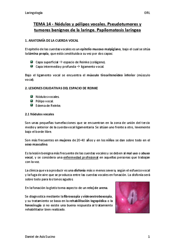 He publicado nuevos apuntes de 4º Otorrinolaringología: PATOLOGÍA LARINGE