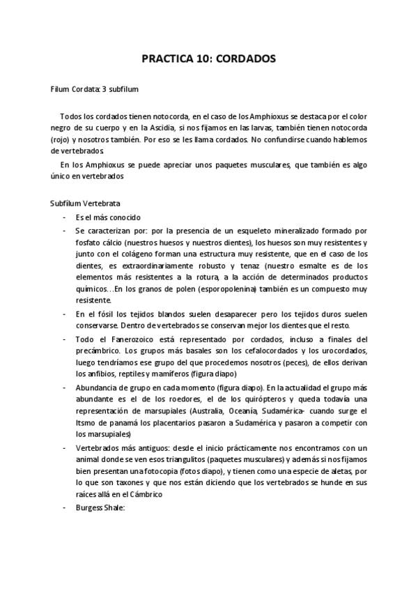Práctica 10. Cordados
