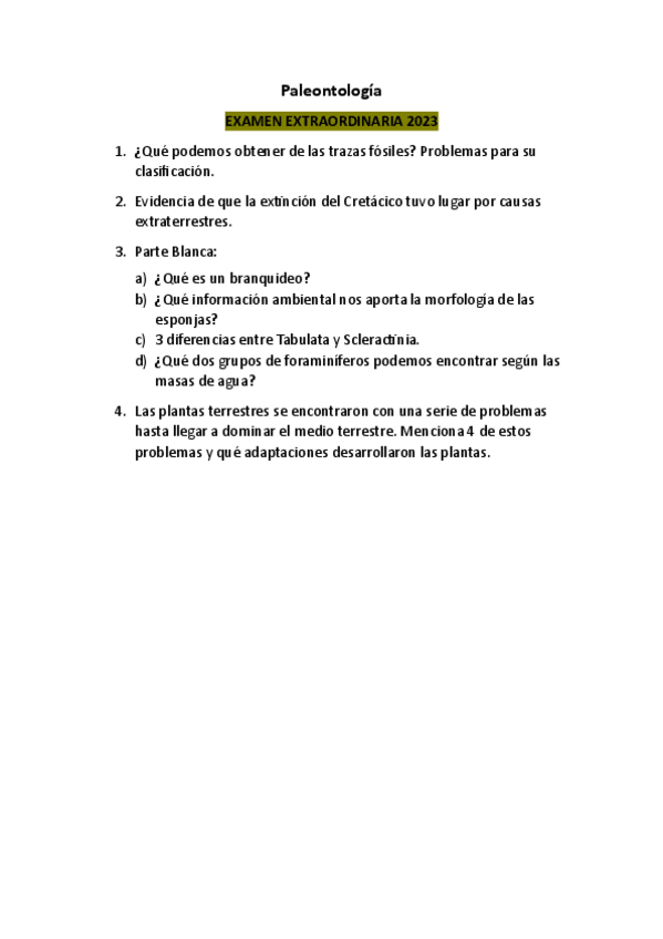He publicado nuevos examenes de 4º Paleontología: Examen-extra2023-Paleontologia.pdf