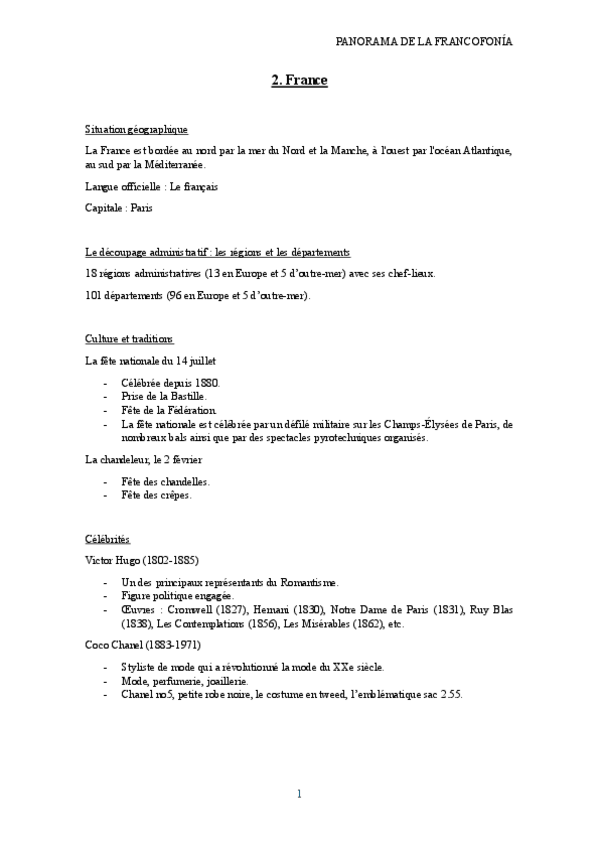 He publicado nuevos apuntes de 1º Panorama de la Francofonia: Tema 2 France.pdf
