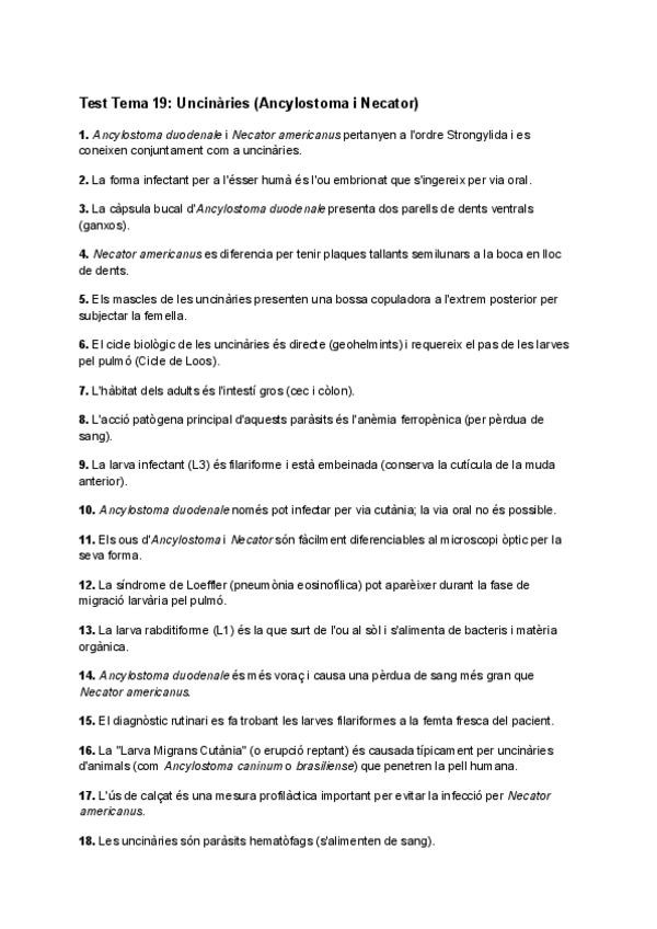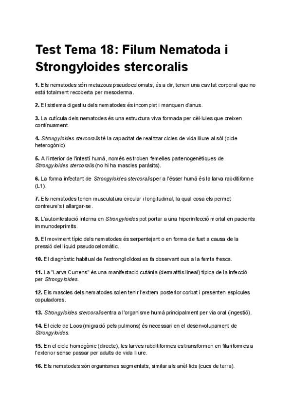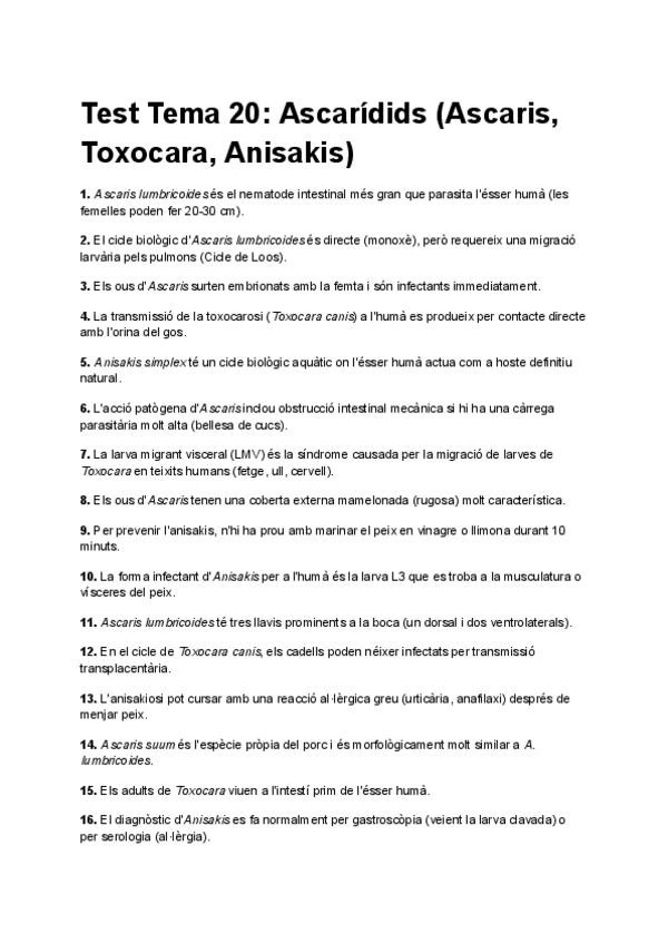 Test de repàs sobre nematodes de cara al final de parasitologia