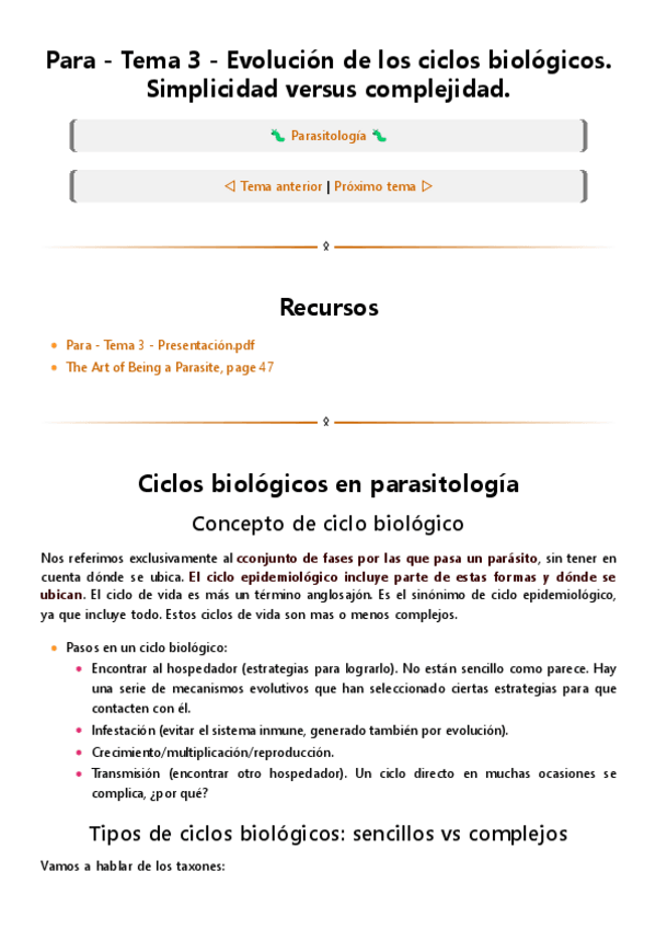 He publicado nuevos apuntes de 4º Parasitología: TEMA 3 - EVOLUCIÓN DE LOS CICLOS BIOLÓGICOS. SIMPLICIDAD VS COMPLEJIDAD.pdf