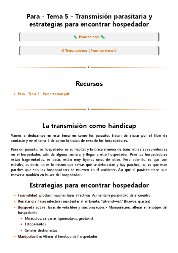 He publicado nuevos apuntes de 4º Parasitología: TEMA 6 - ESTRATEGIAS PARA EVITAR LA PARASITACIÓN. ESTRATEGIAS POST-INFECCIÓN.pdf