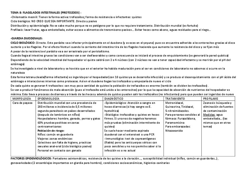 TEMARIO/ TABLAS PRASITOLOGÍA 2º CUATRI