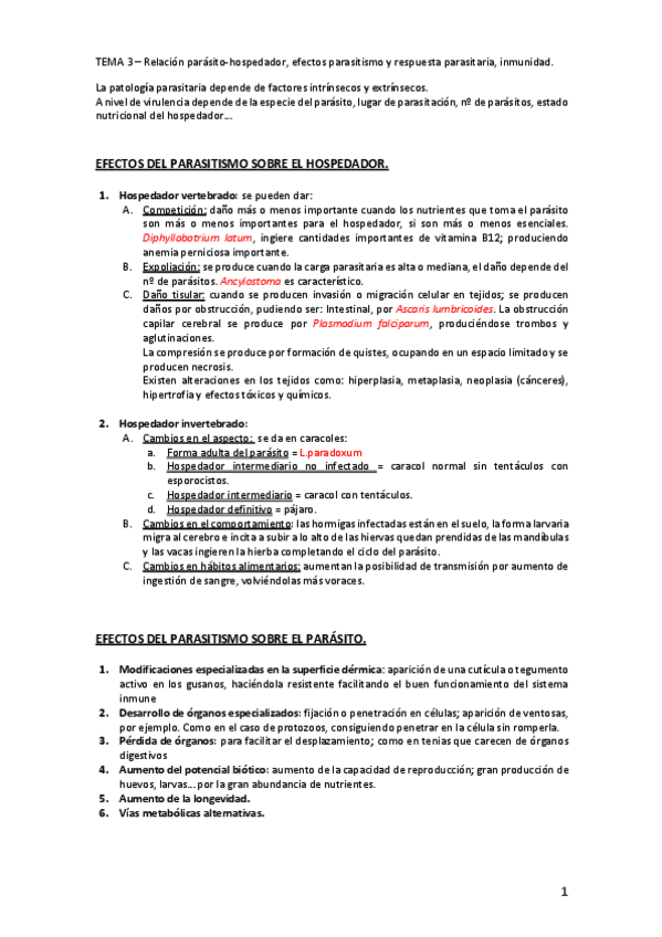 Parasitología - apuntes efectivos