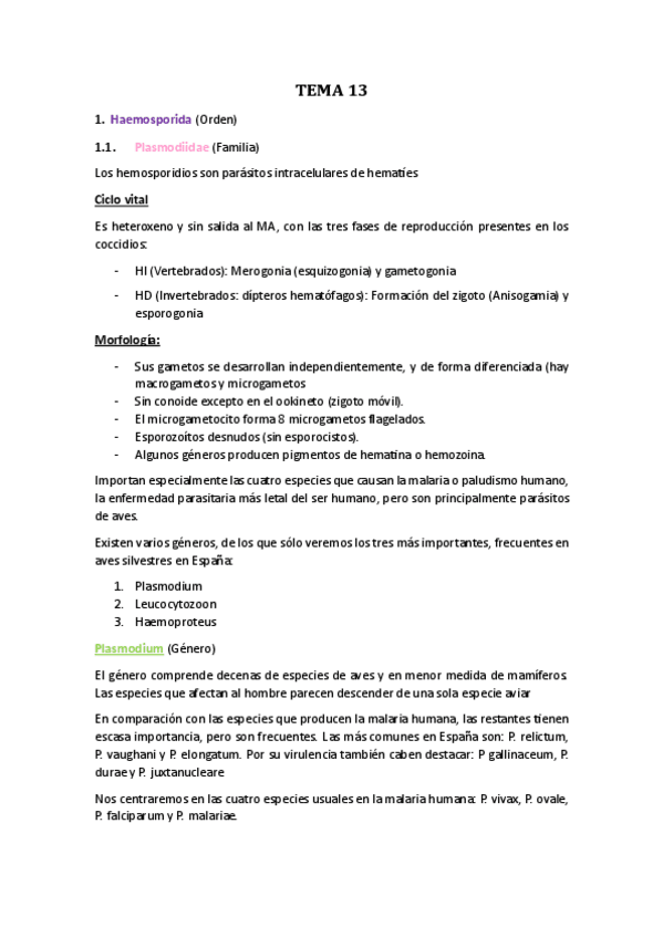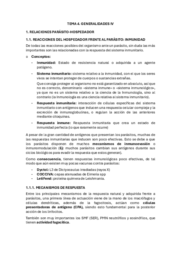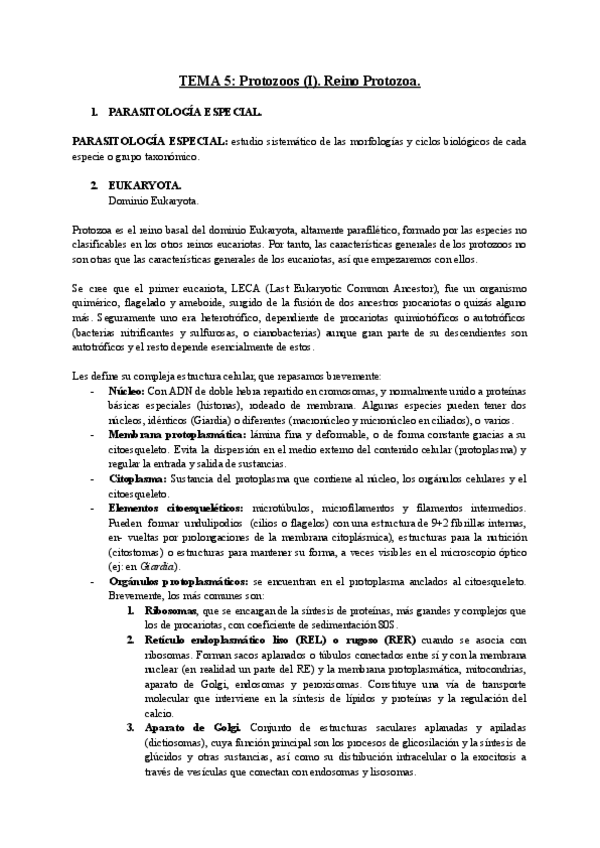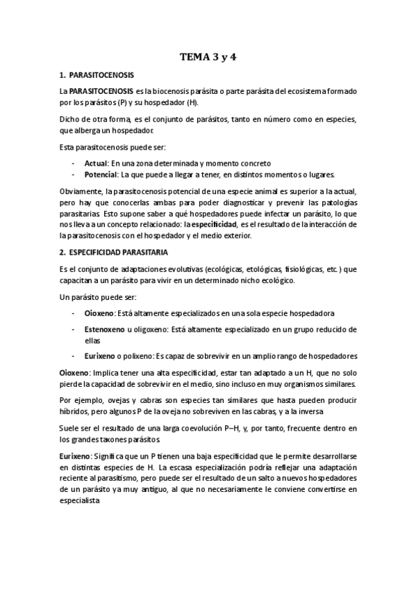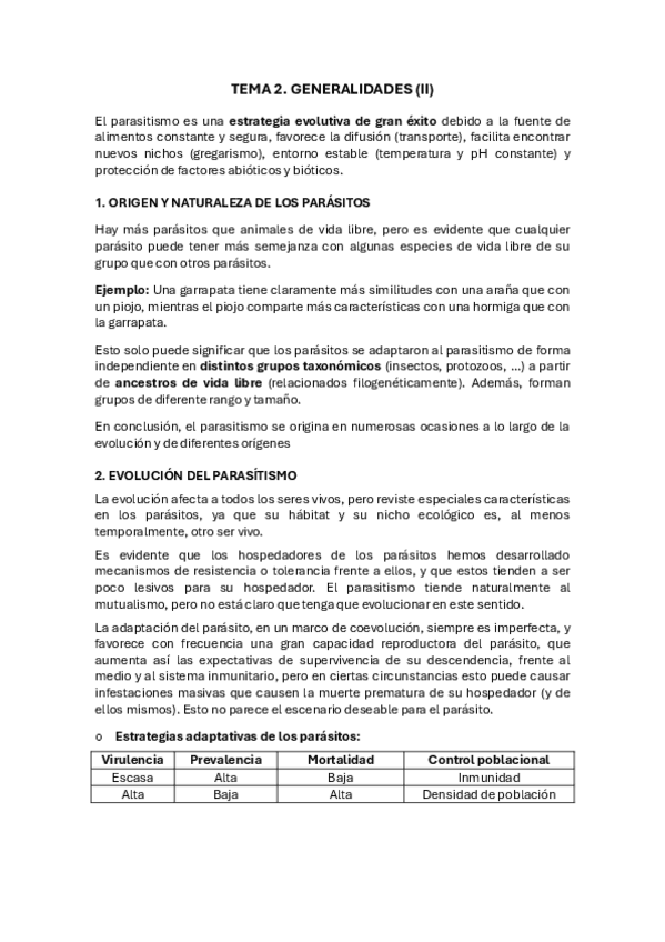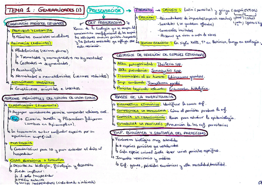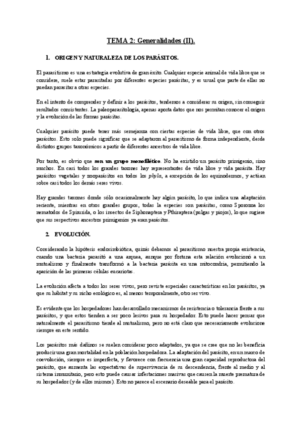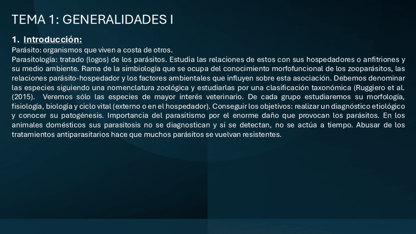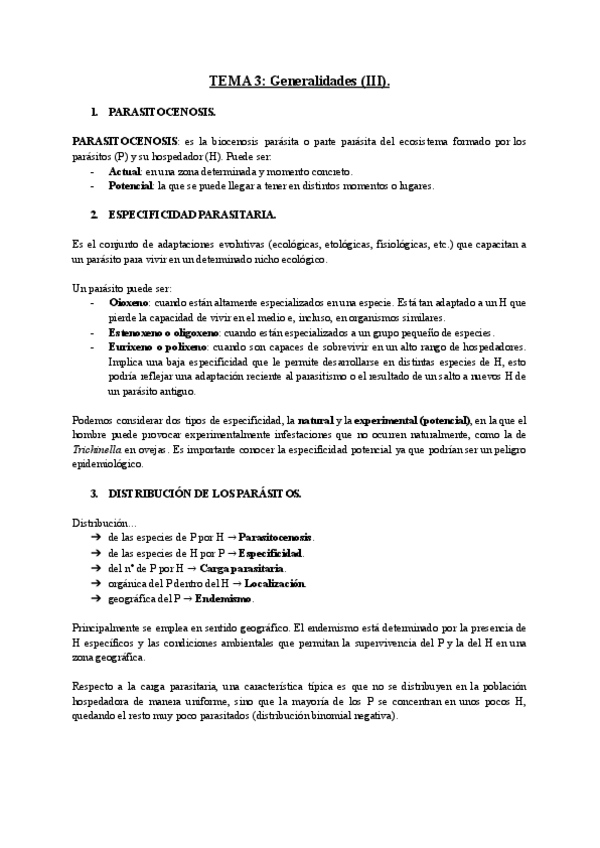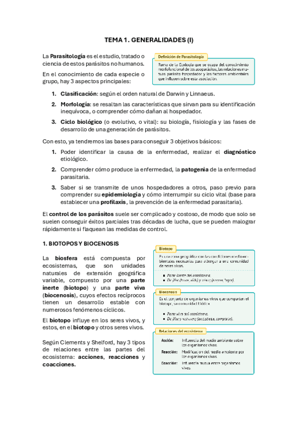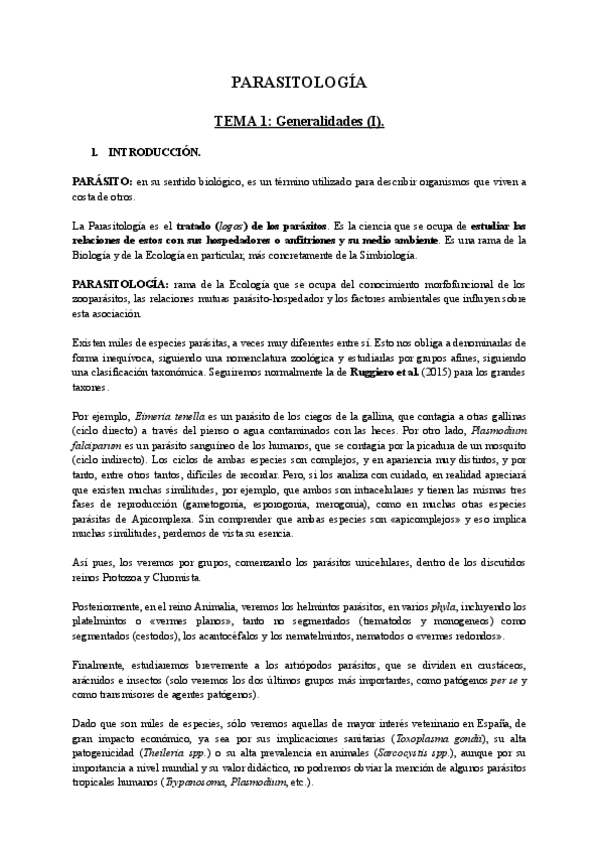Apuntes completos y resumidos del tema 1 de Parasitología, basados en el material del campus