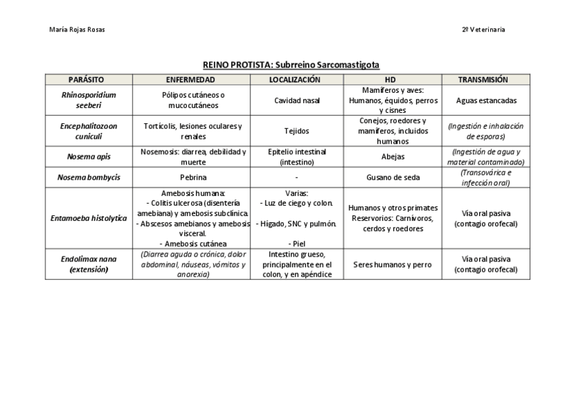 He publicado nuevos apuntes de 2º Parasitología: Tabla especies parcial 2.pdf