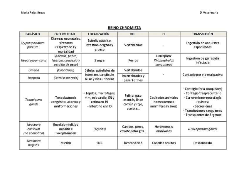 He publicado nuevos apuntes de 2º Parasitología: Tabla especies parcial 1.pdf