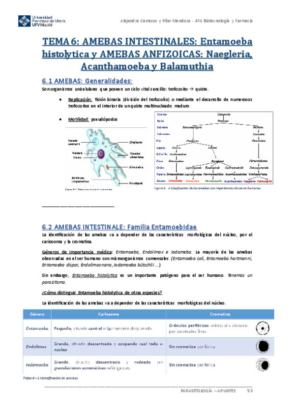 He publicado nuevos apuntes de 4º Parasitología: Tablas protozoos