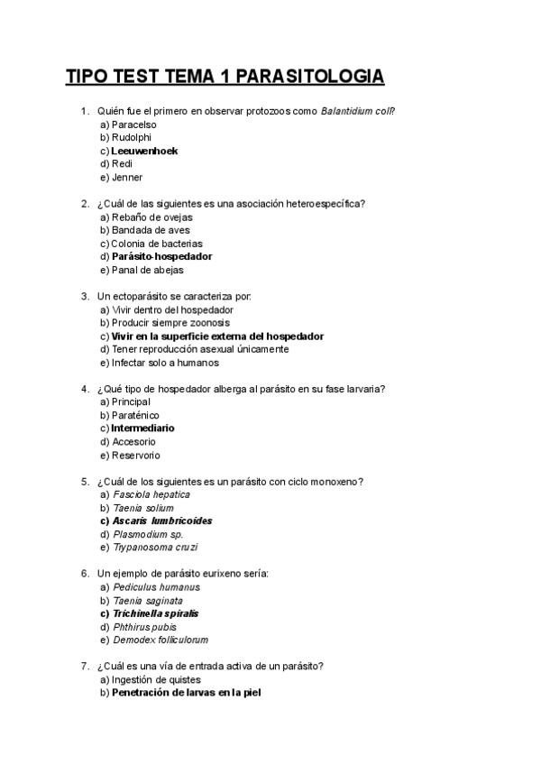 He publicado nuevos examenes de 2º Parasitología: Preguntas-Examen-Parasitologia-1o-parte.pdf