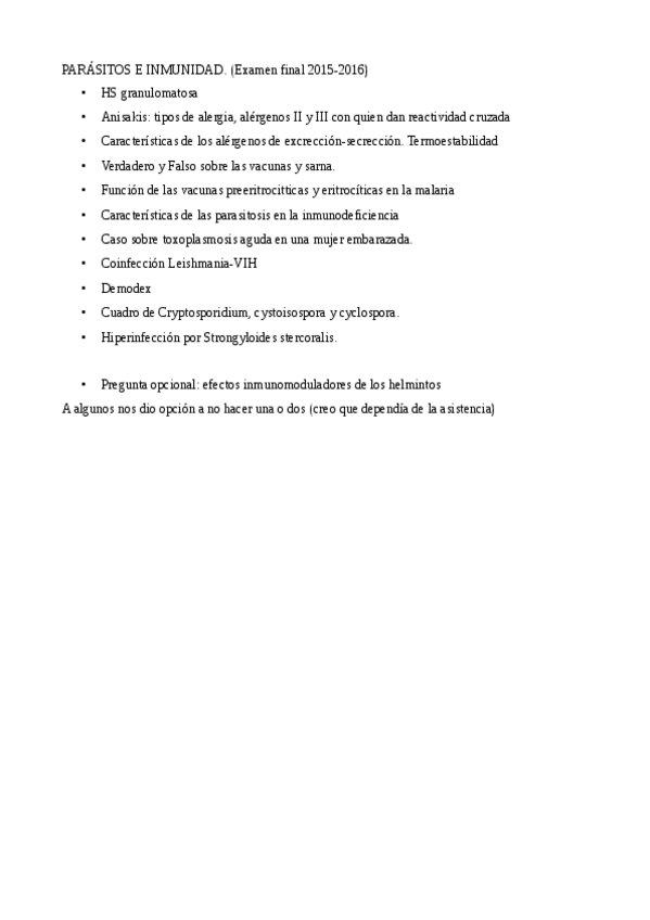 He publicado nuevos examenes de 4º Parásitos e Inmunidad: Preguntas de Exámenes