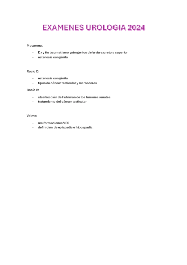 He publicado nuevos examenes de 5º Pat. Quirúrgica Endocrino y Mama. Traumatología y Ortopedia. Maxilofacial. Urología. Neurocirugía: EXAMEN-UROLOGIA-MACARENA-2024.pdf