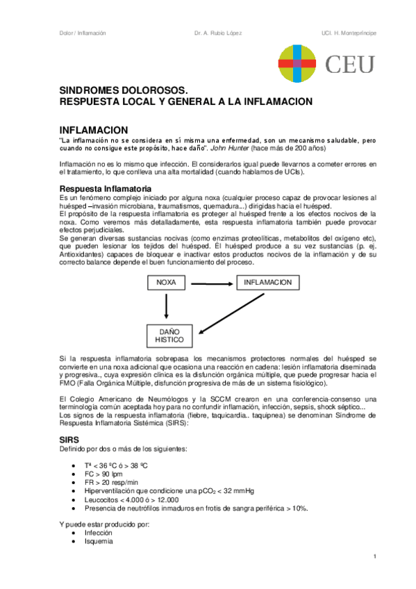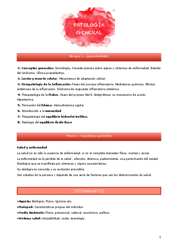 BLOQUE 1. GENERALIDADES • 1. Conceptos generales: Semiología. Consideraciones sobre signos y síntomas de enfermedad. Estudio del síndrome. Clínica propedéutica. • 2. Lesión y muerte celular. Mecanismos de adaptación celular • 3. Fisiopatología de la Infla