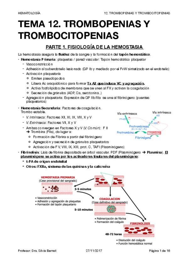 He publicado nuevos apuntes de 4º Patología: Hematología y Oncología: 12. TROMBOPENIAS Y TROMBOCITOPENIAS.pdf