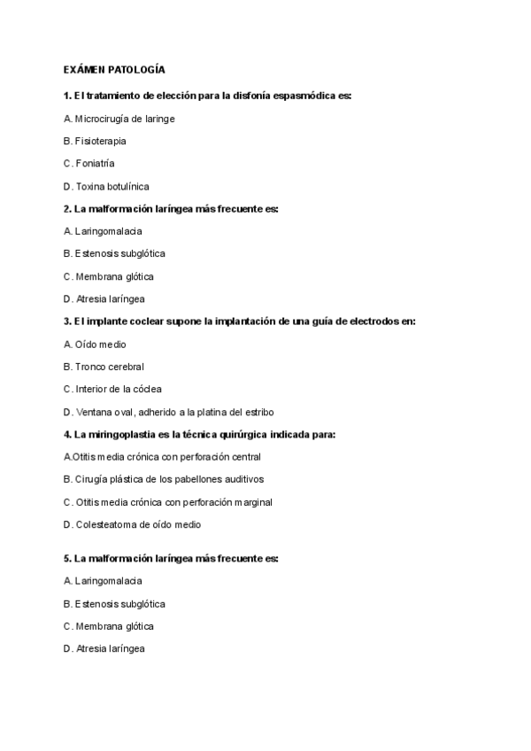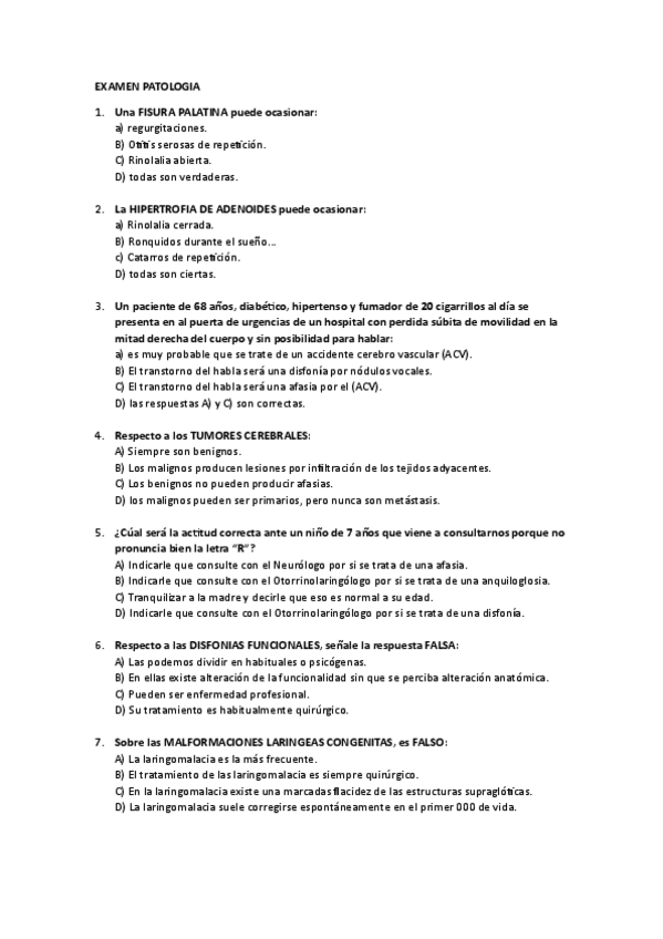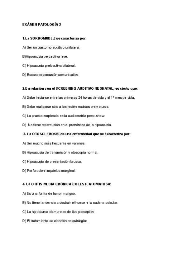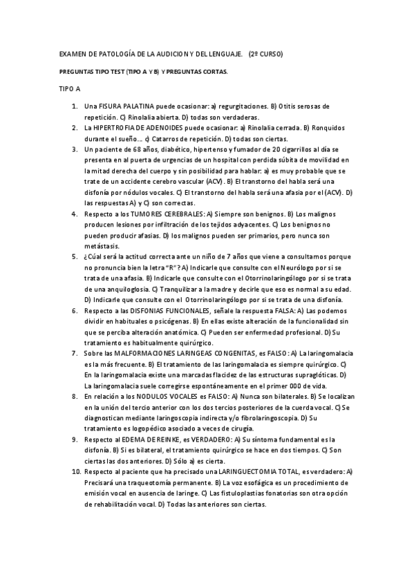 He publicado nuevos examenes de 2º Patología Médica de la Audición y del Lenguaje: EXAMEN PATOLOGIA