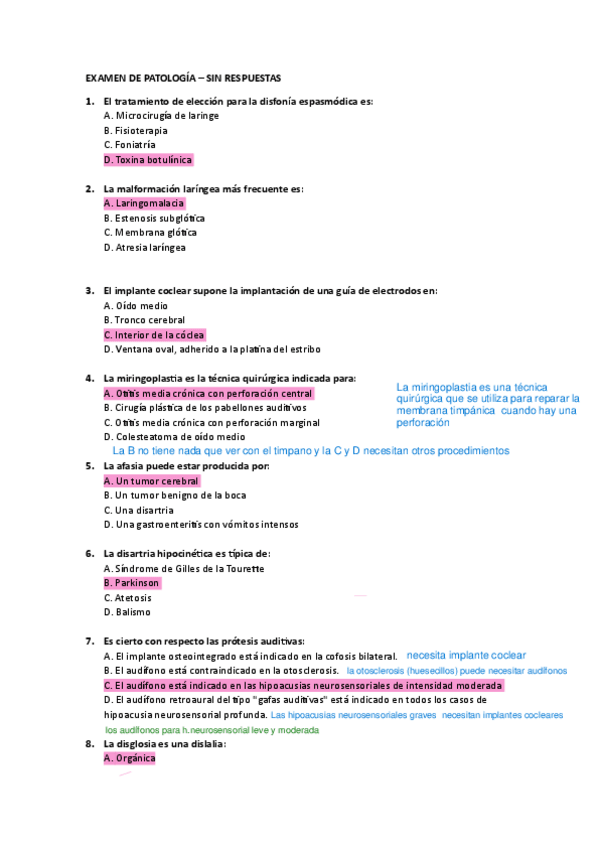 He publicado nuevos examenes de 2º Patología Médica de la Audición y del Lenguaje: EXAMEN CORREGIDO MAYO 2024