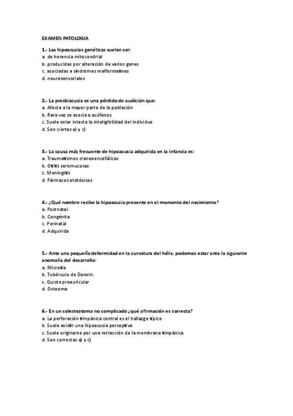 He publicado nuevos examenes de 2º Patología Médica de la Audición y del Lenguaje: EXAMEN PATOLOGIA