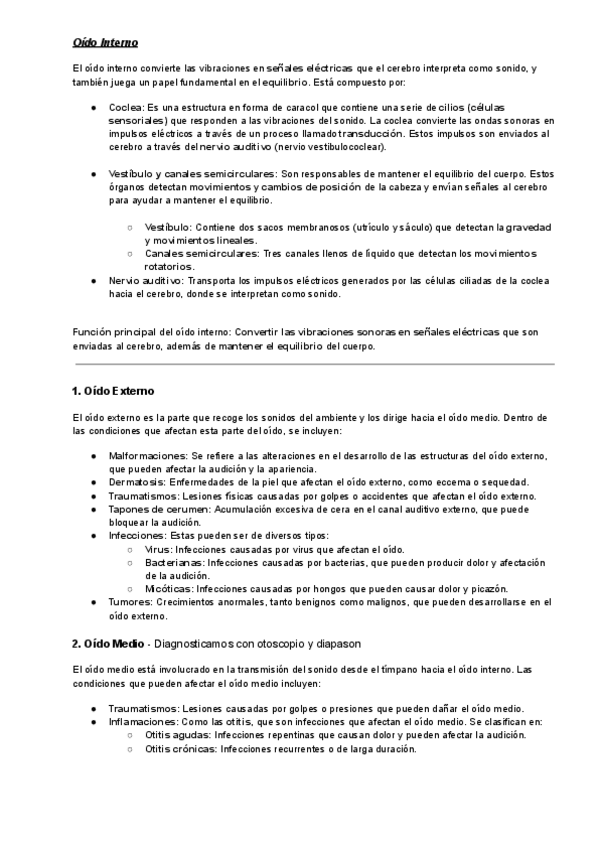 Patologías oido externo, medio e interno y retrococlear.