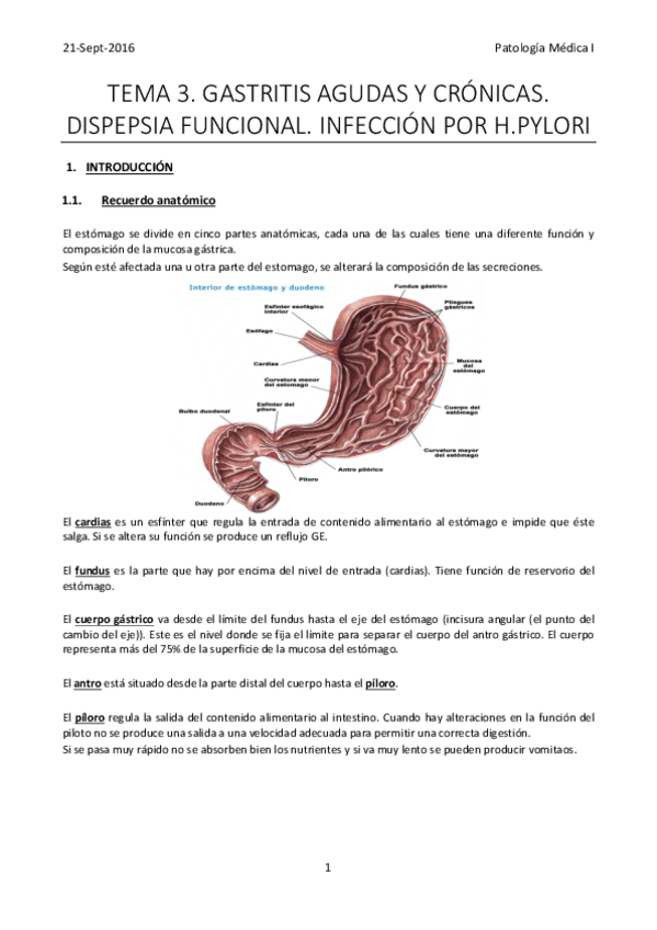 He publicado nuevos apuntes de 4º Patología Médica de Sistemas:: Tema 3. Gastritis agudas y crónicas.pdf