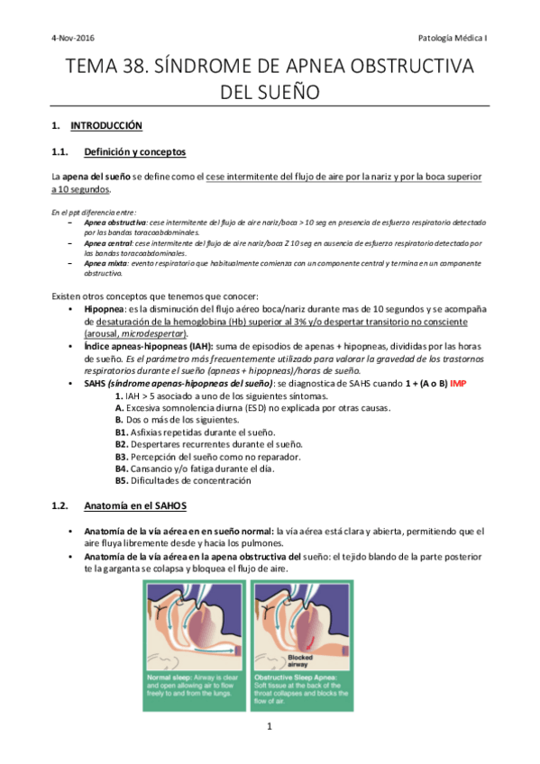 He publicado nuevos apuntes de 4º Patología Médica de Sistemas:: Tema 38. Síndrome de Apnea del Sueño (concepto estudio clínico y tratamiento).pdf