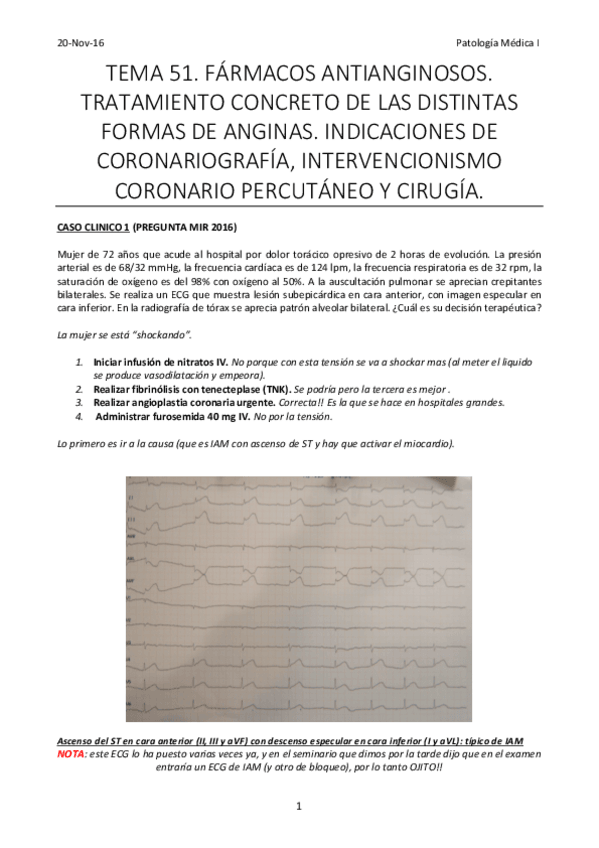 He publicado nuevos apuntes de 4º Patología Médica de Sistemas:: Tema 51. Fármacos antianginosos. Tratamiento concreto de las distintas formas de anginas. Indicaciones de coronariografía intervencionismo coronario percutáneo y cirugía. .pdf
