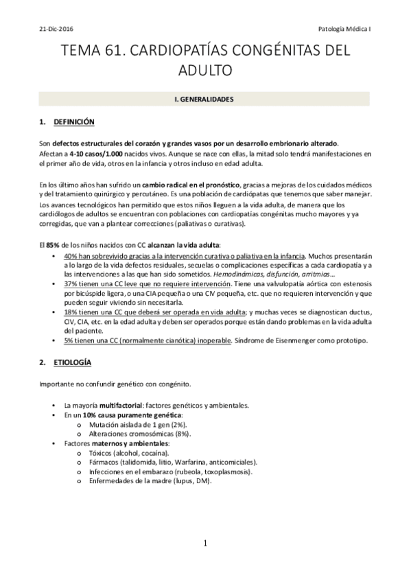 He publicado nuevos apuntes de 4º Patología Médica de Sistemas:: Tema 61. Miocardiopatías congénitas en el adulto.pdf