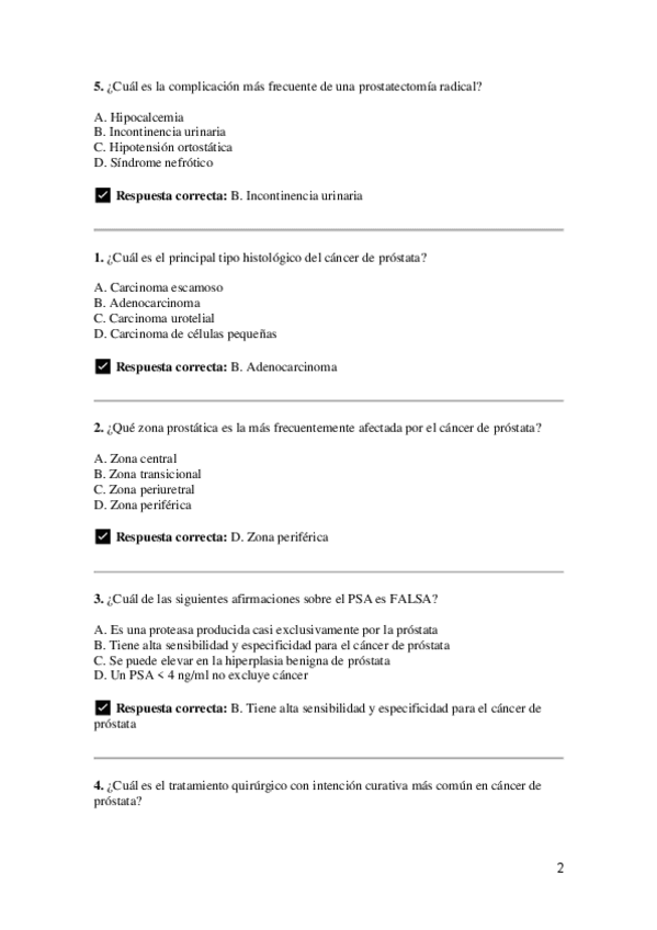 Preguntas de test de repaso de la parte de Urología (similares a las de los exámenes). Organizadas por temas.