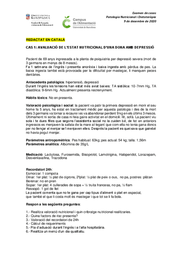He publicado nuevos examenes de 3º Patologia Nutricional i Dietoteràpia: Examen-gener-2021-amb-respostes.pdf