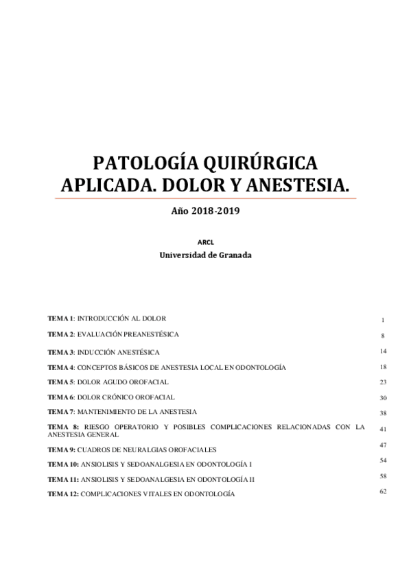 He publicado nuevos apuntes de 2º PATOLOGÍA QUIRÚRGICA APLICADA: Parcial anestesia y dolor noviembre