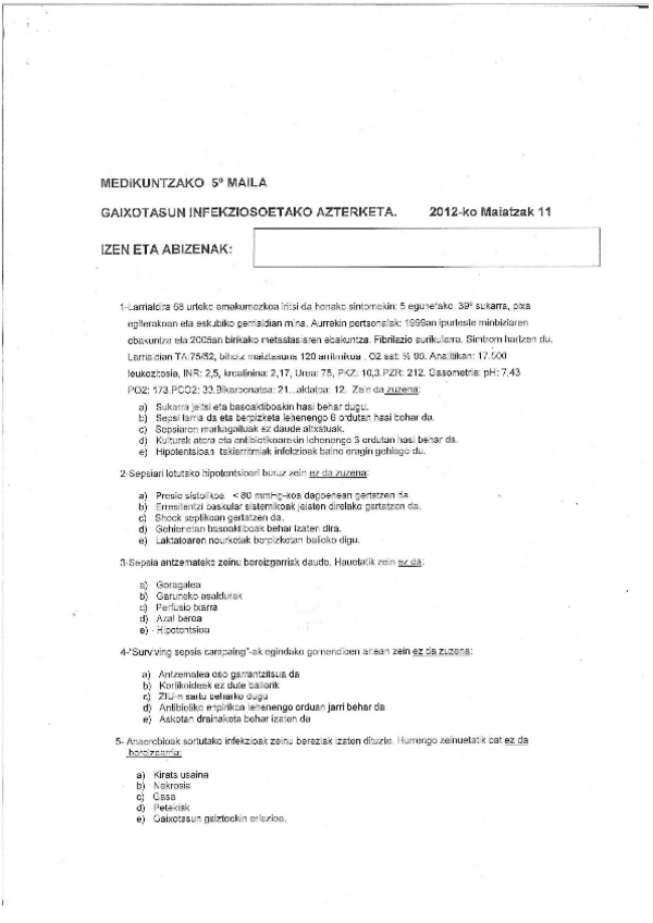 He publicado nuevos examenes de 5º Patología y Clínica Médica II: Infekzioetako-azterketa-2012.docx.pdf