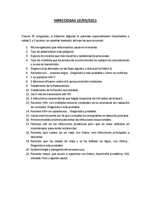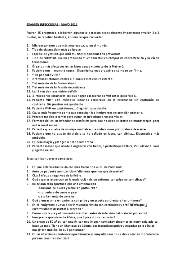 He publicado nuevos examenes de 5º Patología y Clínica Médica II: INFECCIOSAS-10-05-2011.doc.pdf