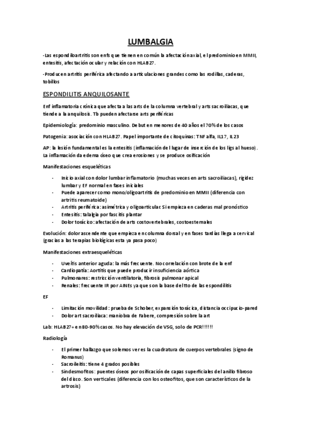 Clase 3 Reuma - Lumbalgia, Vasculitis, AIJ