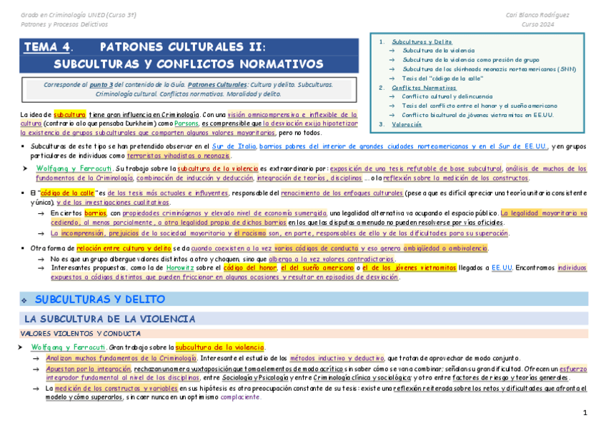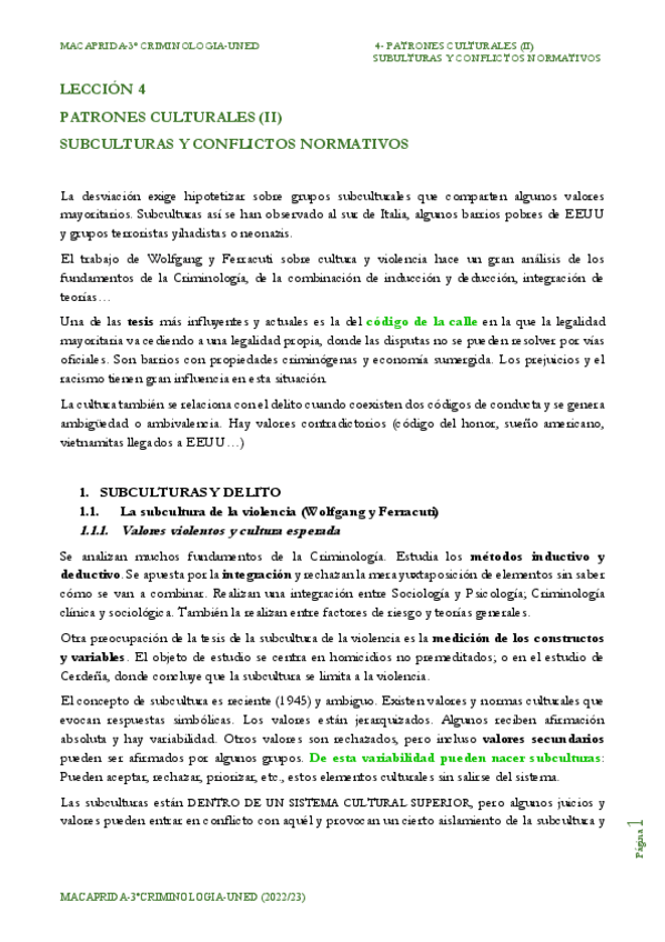 He publicado nuevos apuntes de 3º PATRONES Y PROCESOS DELICTIVOS: Leccion-4-Patrones-Culturales-II-Subculturas-y-Conflictos-Normativos2024.pdf