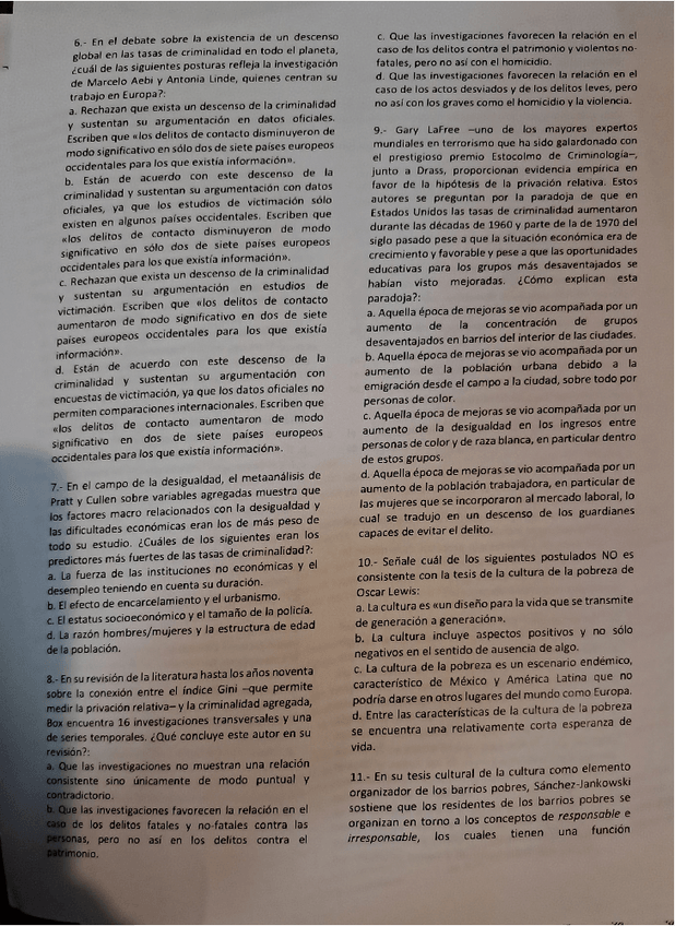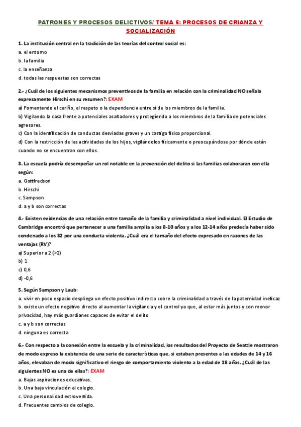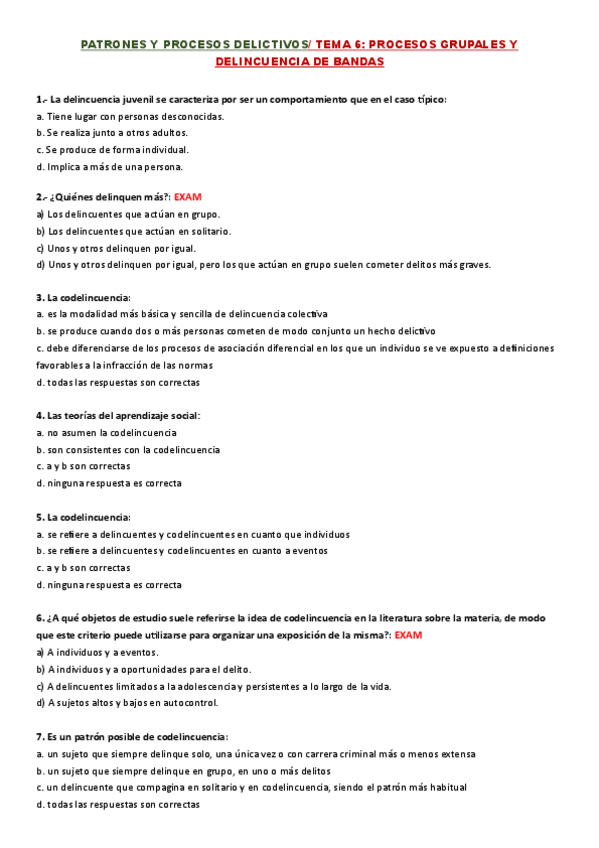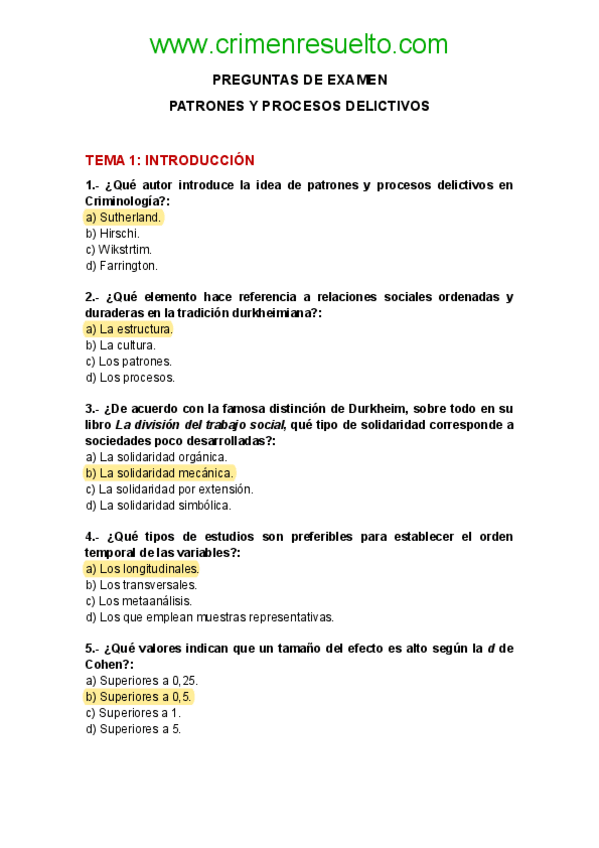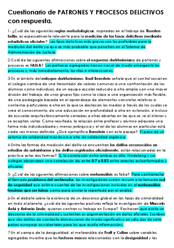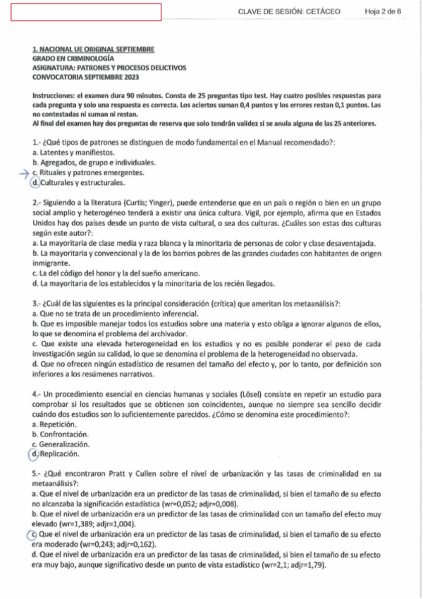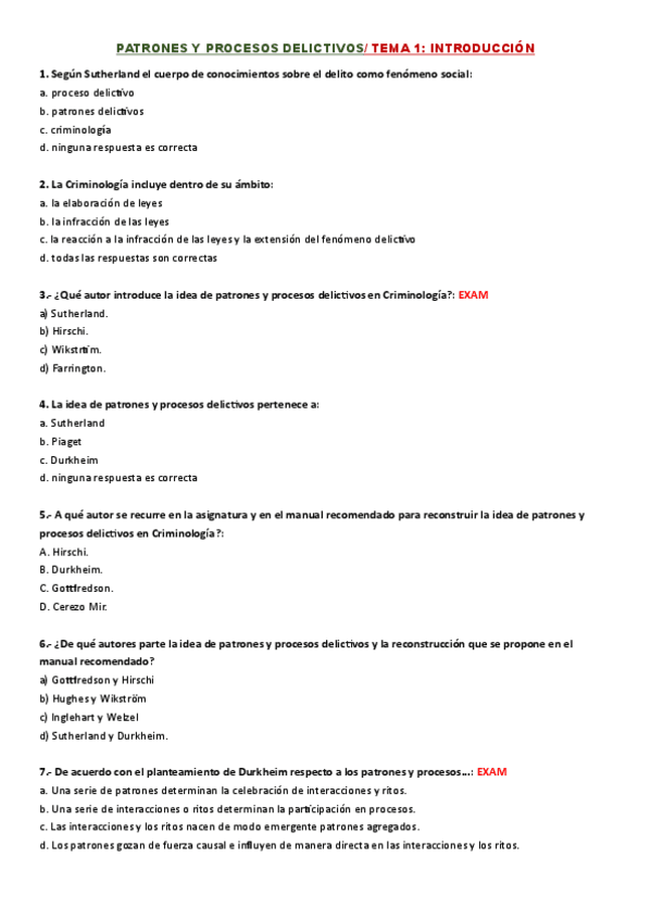 Cuestionario Patrones y procesos delictivos, recopilación de pregunas de exámenes con su respuesta. UNED-criminología.