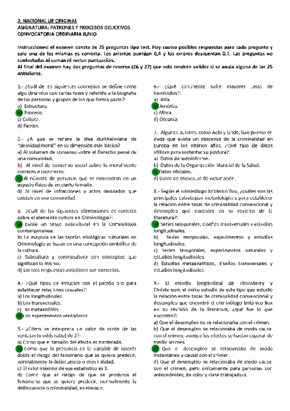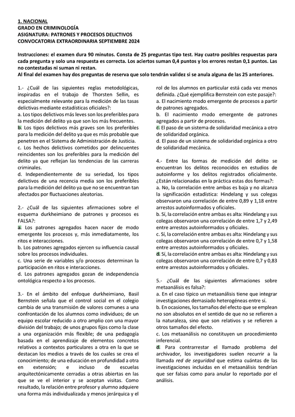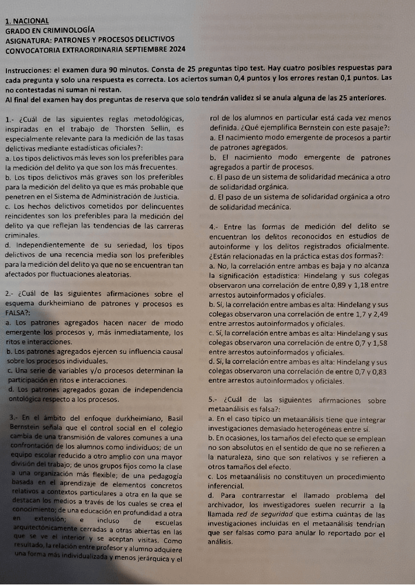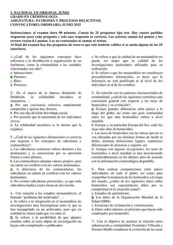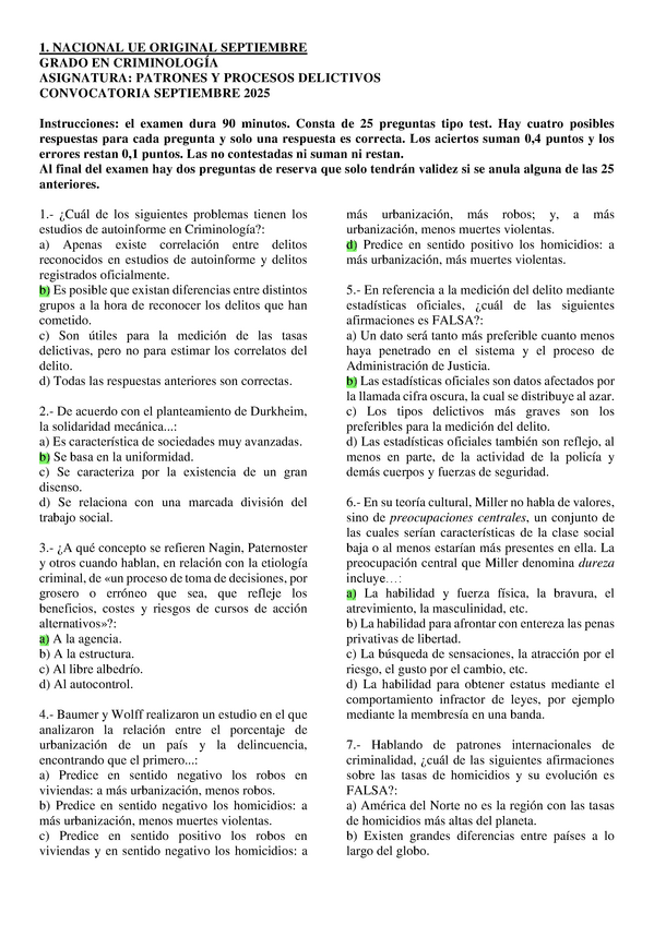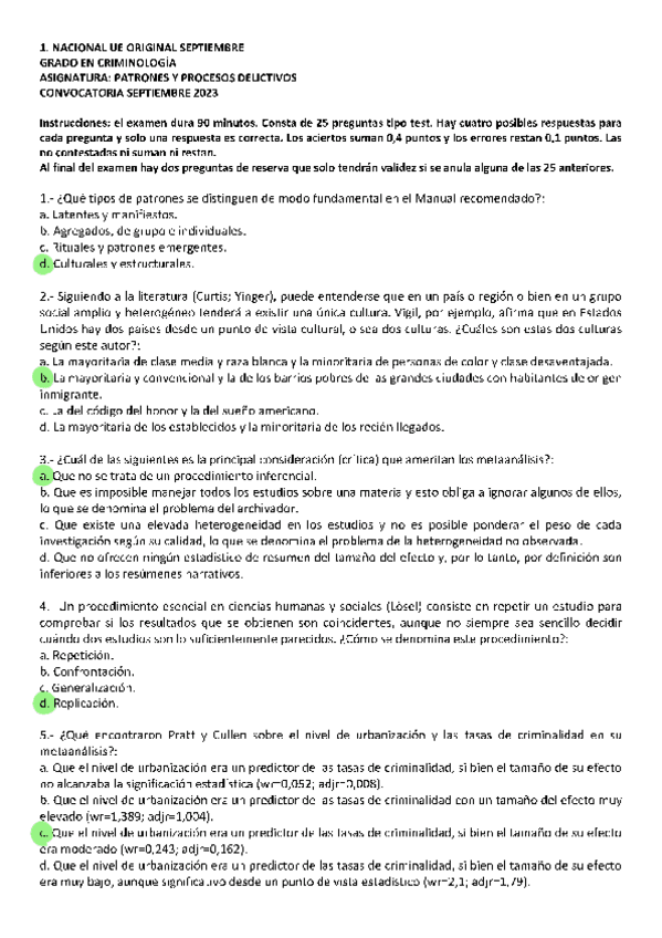 Patrones y Procesos Delictivos, exámenes 2025 con respuestas, Grado en criminología UNED, Tercer curso.