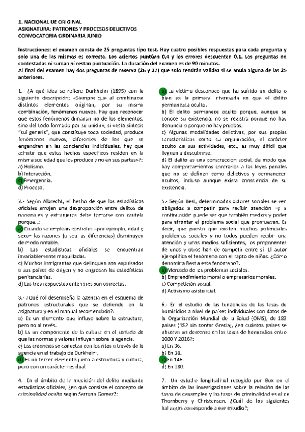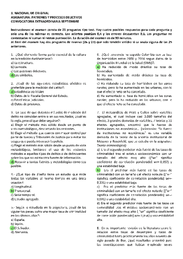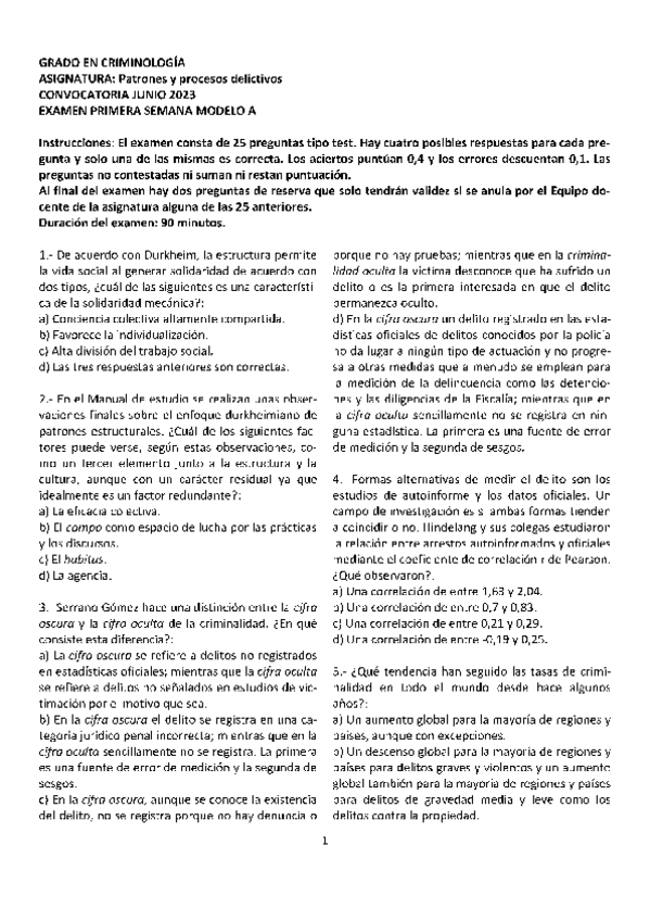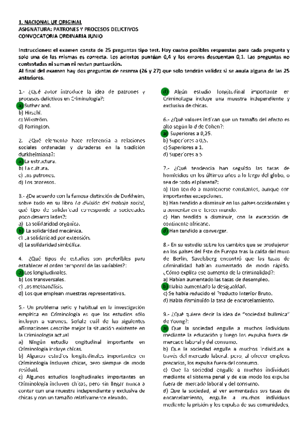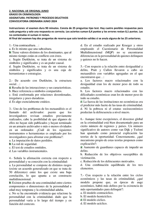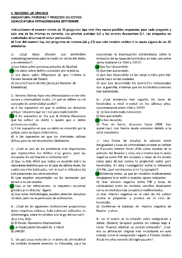 Patrones y Procesos Delictivos, exámenes 2025 con respuestas, Grado en criminología UNED, Tercer curso.